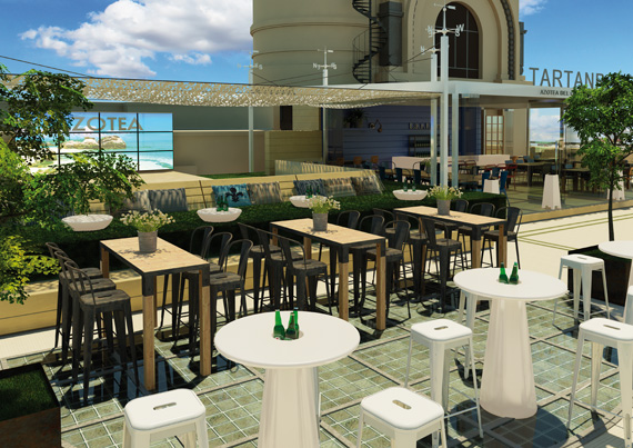 El restaurante, a cargo del chef Javier Muñoz Calero, cambia su look y oferta gastronómica según la estación del año: Primavera y Verano funciona como Tartanroof y en Otoño e Invierno como Tartan Lodge. La propuesta del chef es ofrecer una carta basada en comida callejera de todo el mundo: comida rápida y que se toma con los dedos. Cucuruchos de croquetas semi-liquidas de jamón ibérico o de chanquetes, cebolla morada, boniato y salsa brava ó bien tacos fríos de langostinos, aguacate, chile rojo, mango con brunoise de tomate, cebolla morada y cilantro son sólo algunas de las recomendaciones de la carta de Tartanroof.