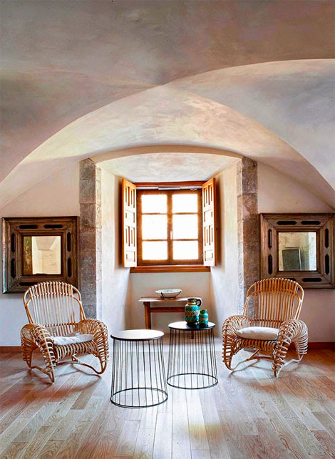 La suite Galiusse tiene un aire muy natural y desenfadado. Textiles de colores, luminarias con bases en cerámica y muebles antiguos del monasterio decoran el espacio.