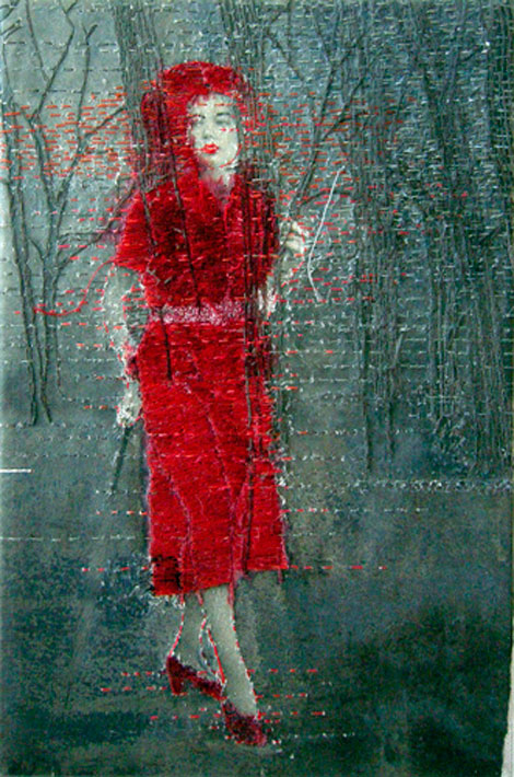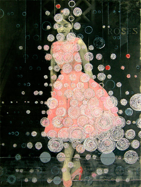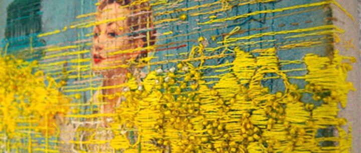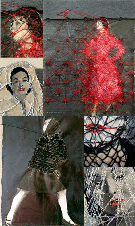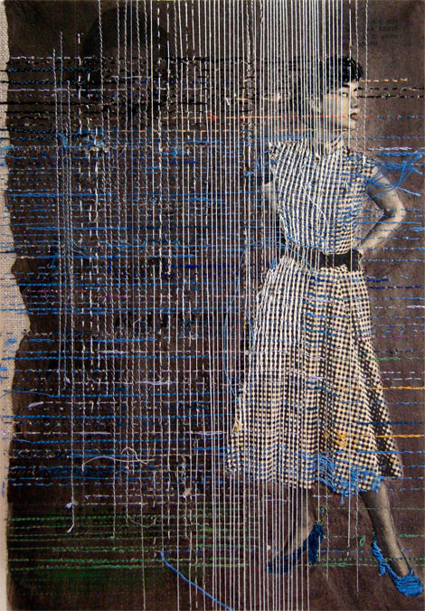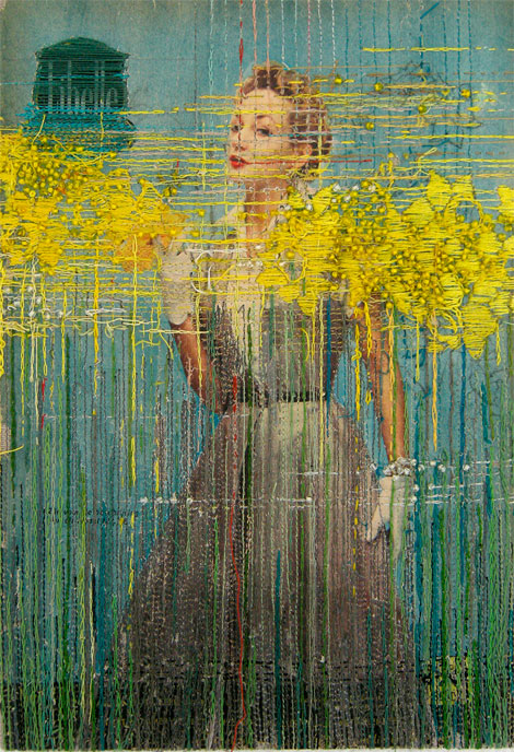 Son varios los artistas que trabajan en torno a estas técnicas. En este sentido, hoy os traigo unas imágenes de la obra de la holandesa Hinke Schreuder. Una artista contemporánea que busca comunicarse a través de la intersección de dos técnicas, la fotografía y el bordado. Hinke escoge fotografías ó ilustraciones vintage de mujeres de los años 50, y las transforma superponiéndolas con elaboradas capas de bordado hechas a mano, de puntillas o de encajes. El resultado es sorprendente, obtiene imágenes completamente nuevas, a veces perturbadoras ó inquietantes.
