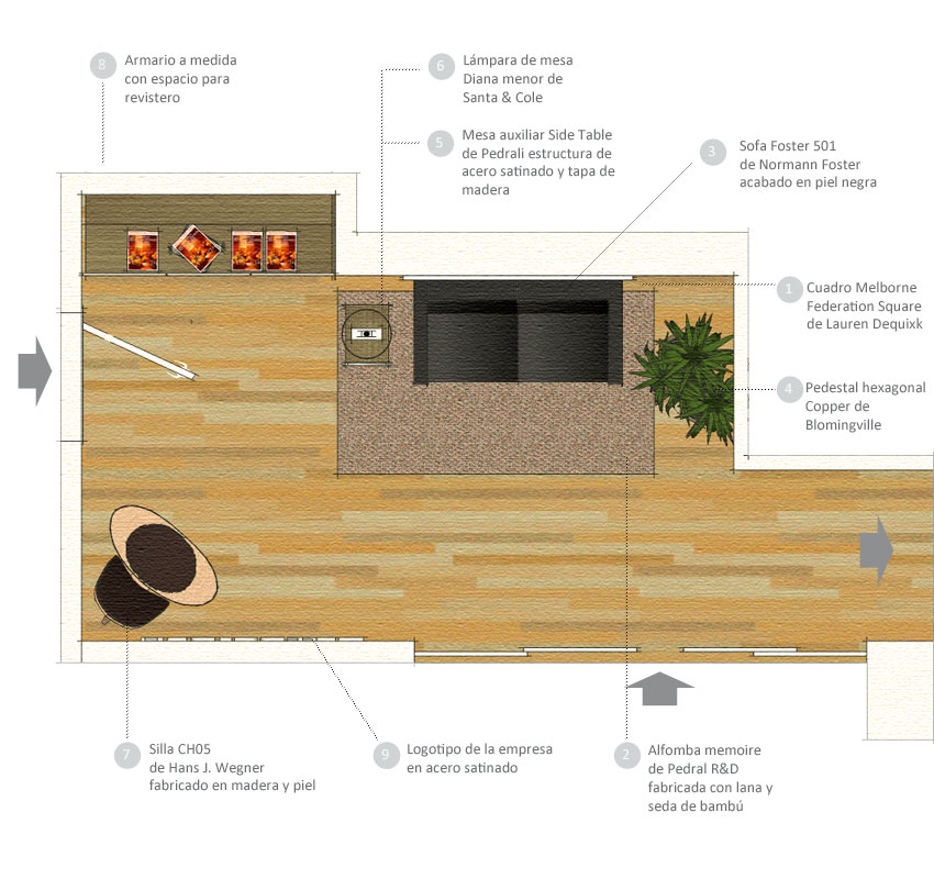 Empiezo esta sección con uno de mis últimos asesoramiento online. Se trata de la sala de espera de un despacho de abogados. El gran desafío de este proyecto era integrar en pocos metros cuadrados una zona de espera acogedora, elegante y funcional sin entorpecer el espacio de circulación que da acceso a las salas contiguas. Tras un estudio minuncioso, hemos logrado nuestro objetivo. Aquí os dejo los sketch de nuestra propuesta.