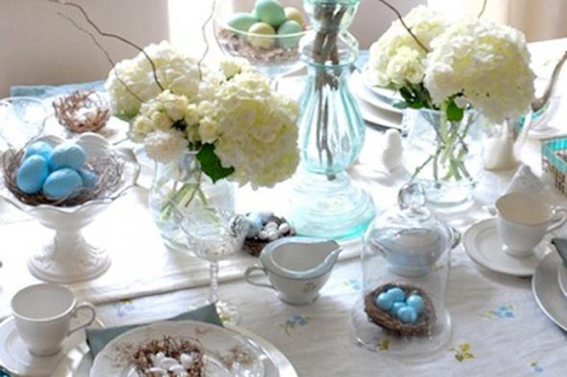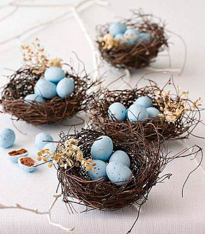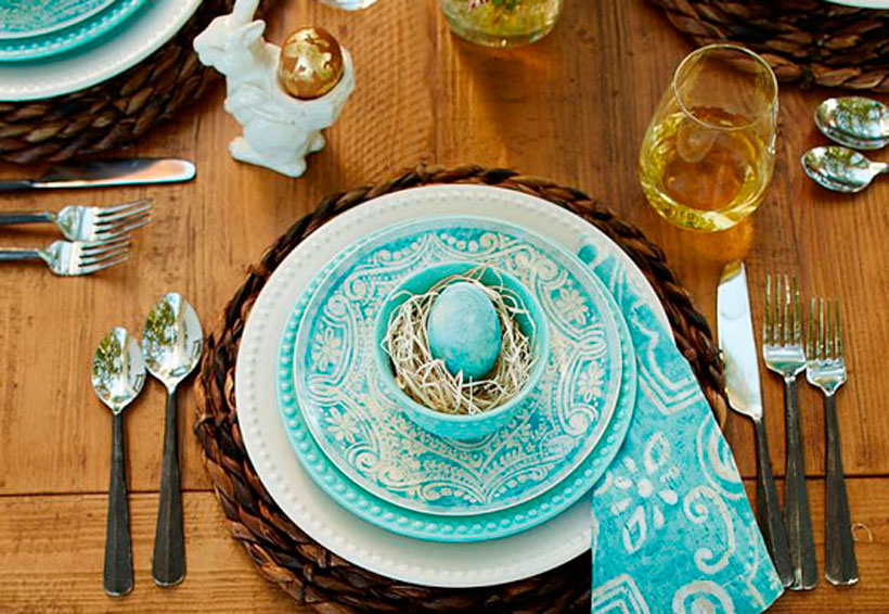 No dejes de prestar atención a los pequeños detalles. Individualmente, sobre los platos de los invitados, complemente la decoración con los elementos que simbolizan la pascua como huevos, conejos y pequeños nidos.