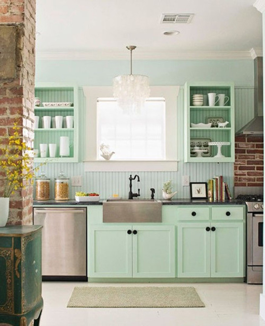Look provenzal: Los tonos claros como el verde agua, menta o manzana, son ideales para detalles y grandes superficies. Lograrás dar un toque muy juvenil y desenfadado al ambiente. Además aportan muchísima luz, descansan la vista y favorecen el buen humor.