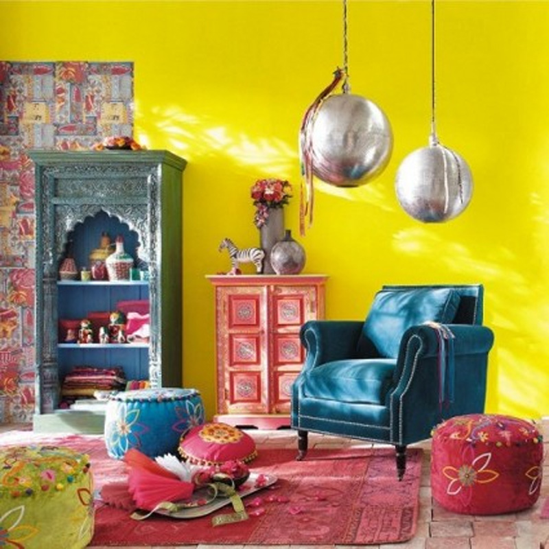 Los rojos, naranjas y ocres son colores fuertes por sí solos. Cuándo lo combinamos con el amarillo aportan mucha energía al espacio. En estos casos, para que no se cargue demasiado el ambiente, lo ideal es aplicarlos en pequeñas cantidades, a fin de que el amarillo domine el espacio ó bien introducir un tercer color de temperatura más fría, como el azul, para romper un poco con tanta calidez.