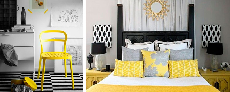 Amarillo es sinónimo de alegría, es el color del sol … inspira y aporta vitalidad. Pero si quieres dar un aire más contemporáneo, nada mejor que combinarlo con colores oscuros como el negro, gris marengo o azul marino.